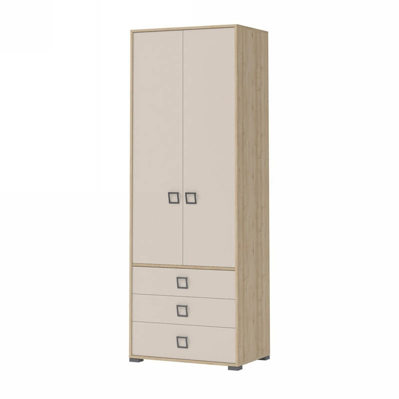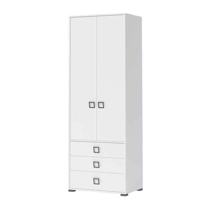 Dvodelna garderobna omara s predali KIKI vsebuje 3 predale, 1 polico in eno palico za obešanje. Je prostorna omara, ki vam bo omogočila dobro organizacijo vaših oblačil. Na voljo je v 4-ih različnih barvnih kombinacijah zato jo lahko prilagodite svojemu okusu. Izdelana je iz oplemenitene iverne plošče in ima funkcijo tihega zapiranja.