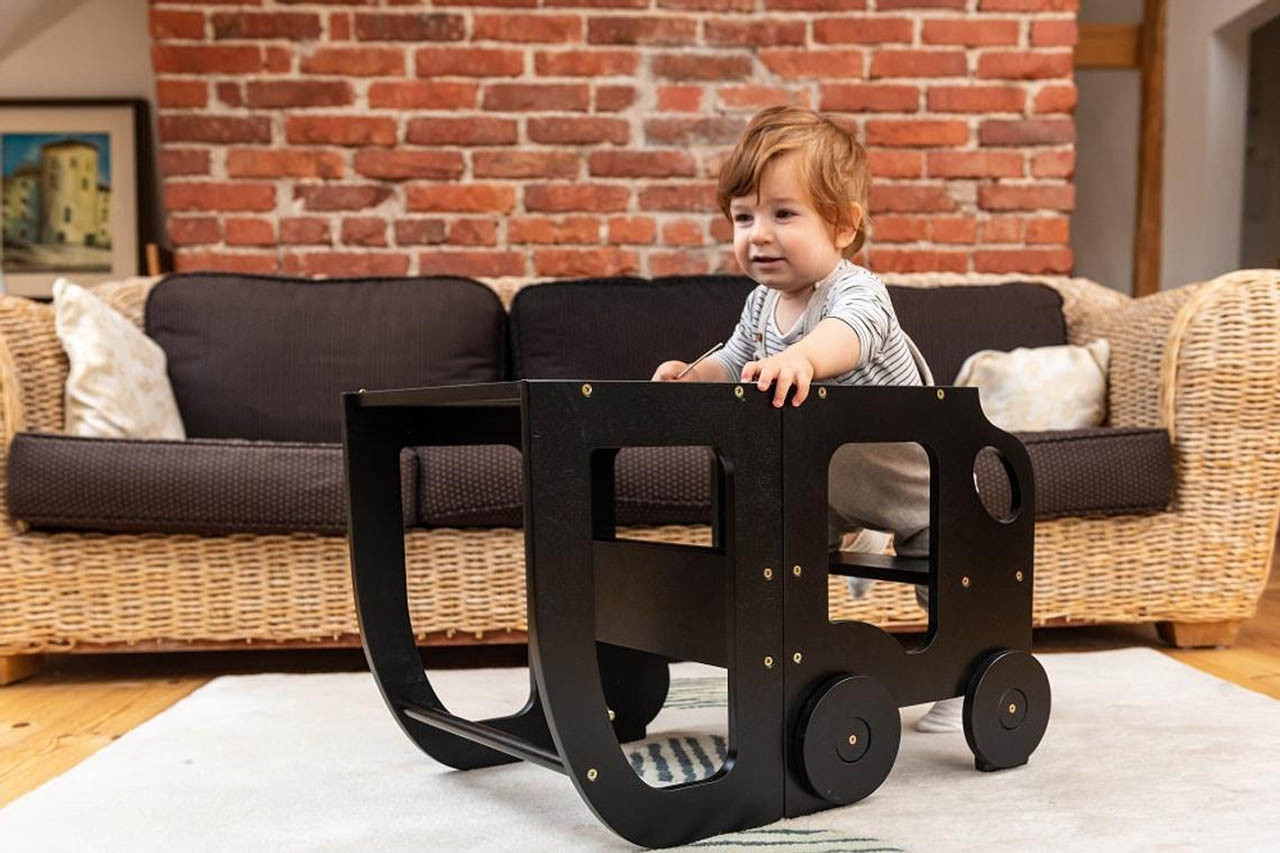 Stolček pomagalček lahko otrok uporabi kot pručko, da bo lažje dosegel višje površine, kot so umivalnik, jedilna miza ali kuhinjski pult, zato se lahko sam umije, ustvarja in aktivno sodeluje pri pripravi hrane. Pručko lahko enostavno spremenite v set mizice in stola, katerega lahko otrok uporabi za hranjenje ali ustvarjanje.