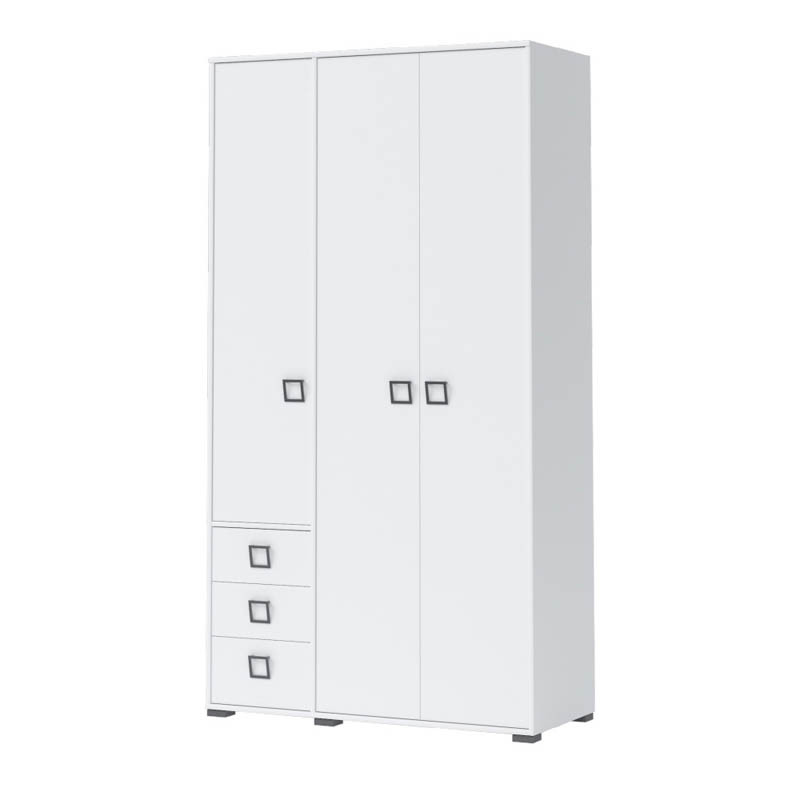 3-delna otroška garderobna omara s predalniki Kiki ima 3 predale, 6 polic in eno palico za obešanje, kar bo vašemu otroku omogočilo dobro organizacijo vseh oblačil in modnih dodatkov. Izbirate lahko med 4-imi barvnimi kombinacijami in tako ustvarite unikatno otroško omaro po svojih željah in pričakovanjih. Izdelana je iz oplemenitene iverne plošče in ima funkcijo tihega zapiranja.