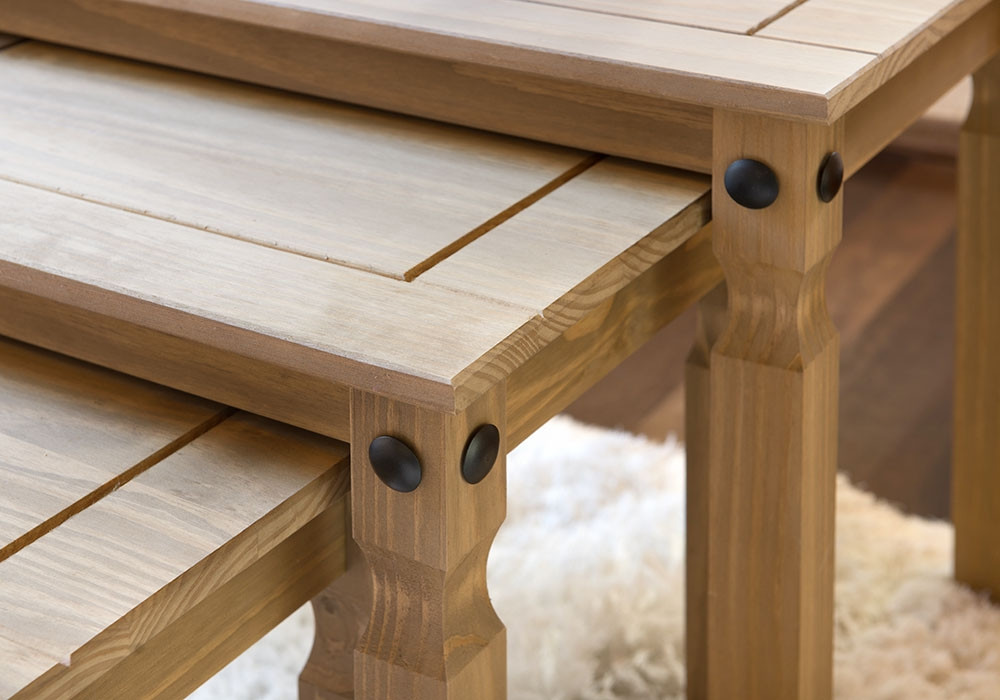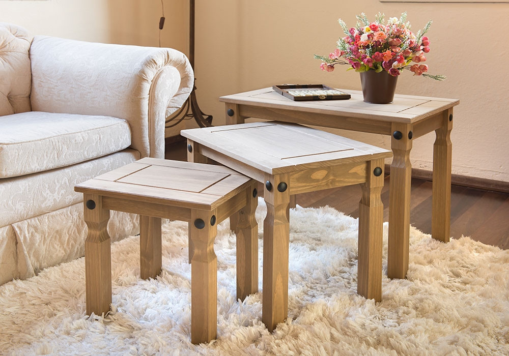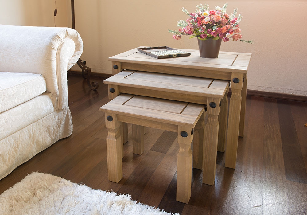 Tridelna vsestransko uporabna klubska miza NEVADA je izjemno praktična, saj vam nudi obilo prostora za odlaganje, hkrati vam pa v prostorni stiski ne bo zavzela veliko prostora saj se mize lahko pospravijo ena pod drugo. Izdelana je iz masivnega borovega lesa, zato vam bo dobro služila mnogo let. Mize lahko uporabite vse skupaj kot klubsko mizico, lahko jih prosto razporedite po domu in jih imate v različnih prostorih za različne namene.