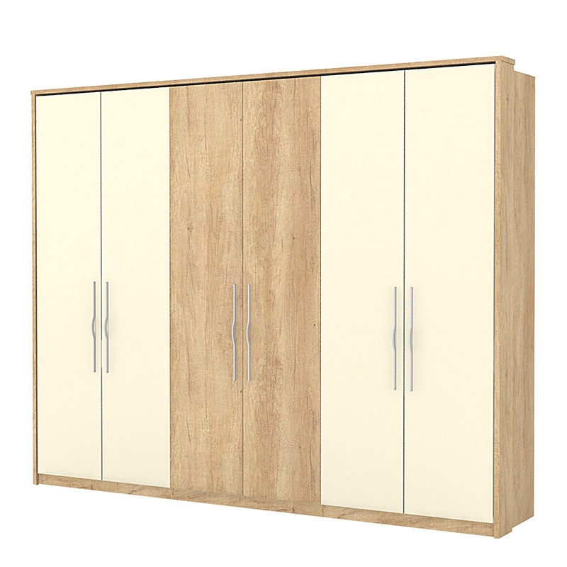 6-delna garderobna omara Kalla Square je odlična izbira za vaš dom saj vam nudi veliko prostora za shranjevanje vaših oblačil, hkrati pa je tudi kvalitetna in dobrega izgleda. Izdelana je iz kvalitetnega MDF materiala v moderni barvni kombinaciji bež in nebraska hrast.
