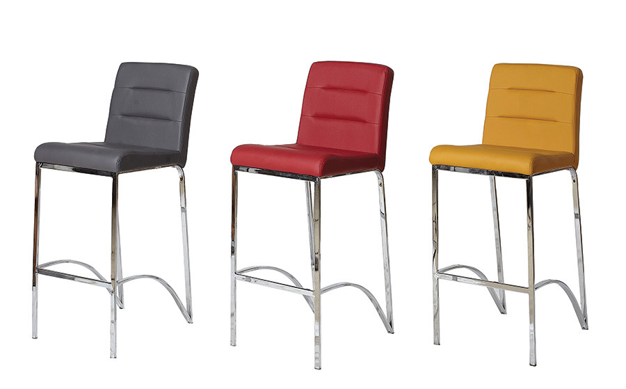 Barski stol BRIX je barski stol v umetnem usnju. Ima štiri kromirane noge. Na voljo je v različnih barvah.