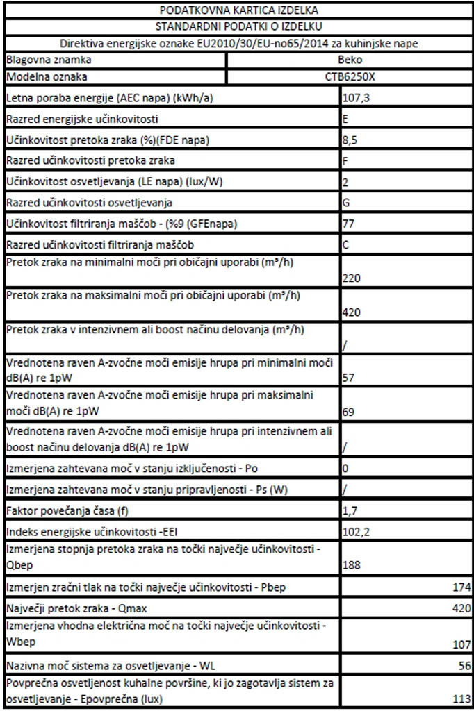 Kuhinjske nape Beko delujejo zelo učinkovito in uspešno odstranjujejo neprijetne vonjave. S tem ohranjajo svež zrak v vaši kuhinji. Kuhinjska napa Beko CTB6250X ima 3 stopnje zmogljivosti vsesavanja zraka, pralne aluminijaste kasetne filtre, največjo zmogljivost vsesavanja 420 m3/h, drsno upravljanje.