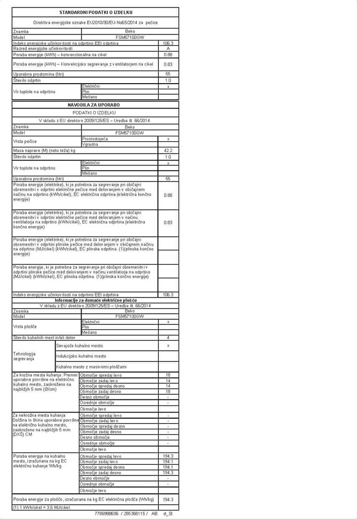 | Razred energij. učinkovitosti | A |