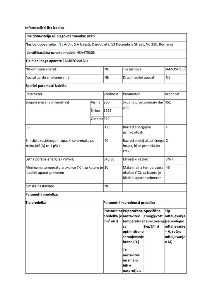 BEKO HSA47530N zamrzovalna skrinja