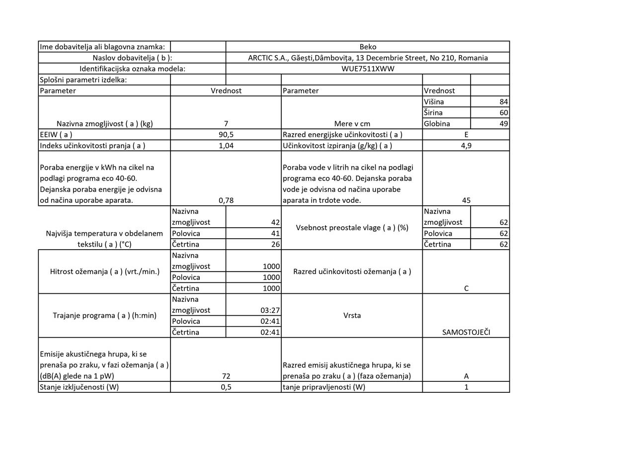 BEKO WUE7511XWW pralni stroj