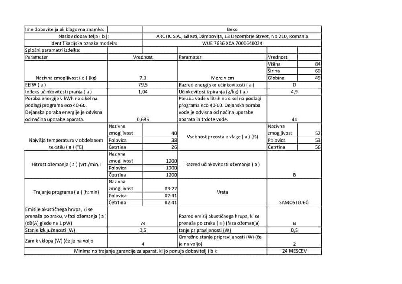 Pralni stroj Beko WUE7636X0A je vrhunski pralni stroj z zmogljivostjo pranja 7 kg. Odlikuje ga tudi parna tehnologija SteamCure – funkcija, ki z nežno močjo pare učinkoviteje odstranjuje madeže. Stroj je izjemno varčen – energijski razred D dosega s ProSmart invertnim motorjem. Na voljo imate 15 programov, med drugimi 14-minutni hitri program, program Stain za odstranjevanje madežev, program za higiensko pranje pri nizkih temperaturah Hygiene+, volno in športna oblačila.