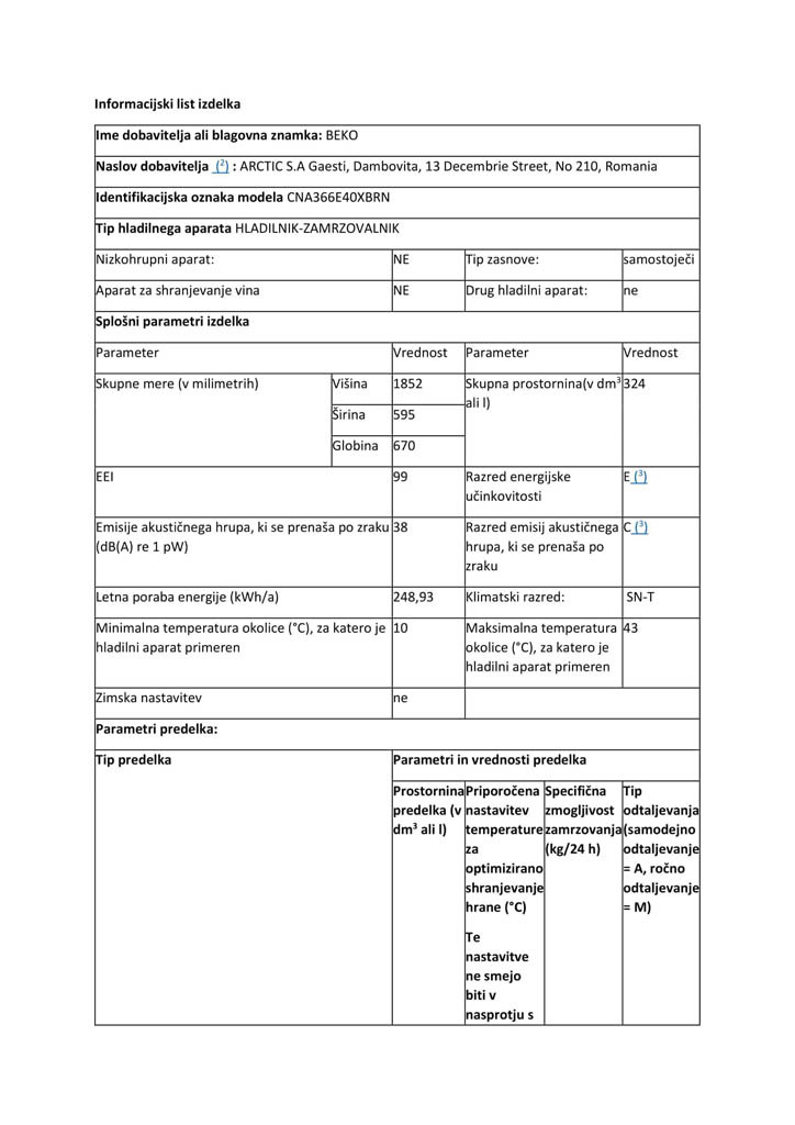 Kombinirani hladilnik Beko CNA366E40XBRN z zamrzovalnikom spodaj navdušuje s tehnologijo NeoFrost, ki pripomore k 2x hitrejšemu hlajenju, samodejnim odtaljevanjem in predalom za daljšo svežino. Zamrzovalni predel ima 3 prostorne predale. Zaradi posebnih tečajev se vrata odpirajo vzporedno s stransko stranico hladilnika, kar skupaj z možnostjo zamenjave strani odpiranja vrat omogoča prilagajanje vsakemu prostoru. Kombinirani hladilnik se nahaja v energetskem razredu E, glasnost njegovega delovanja pa znaša le 38 dB.