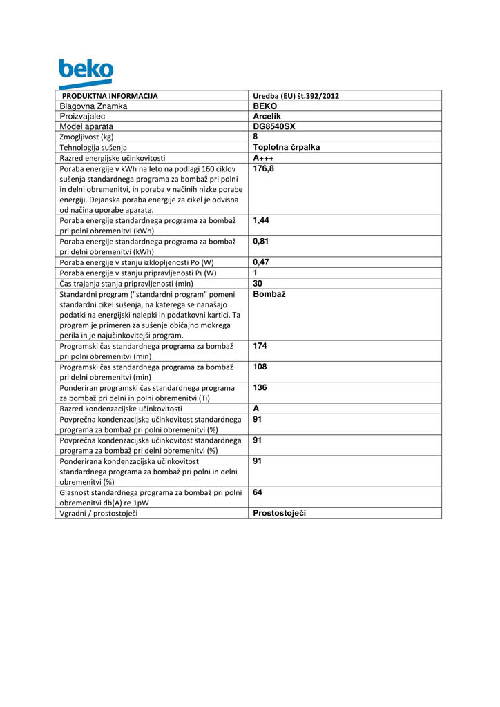 Hibridni sušilni stroj Beko DG8540SX v sebi skriva izjemno moč, ki se nahaja v tehnologiji RapiDry, ki s pomočjo grelca, ProSmart invertnega motorja in toplotne črpalke zagotavlja zelo hitro in učinkovito ter krajše sušenje. S svojim varčnim delovanjem se uvršča v energijski razred A+++, njegovih 15 programov in dve pomožni funkciji sušenja pa omogočajo, da bo vaše perilo vedno skrbno negovano. Med programi, ki poskrbijo, da bo sušenje perila postalo prijetno opravilo izstopajo oblačila program za občutljiva oblačila, program za osvežitev, nočni program, program za srajce, jeans, športna oblačila in program za volnena oblačila.