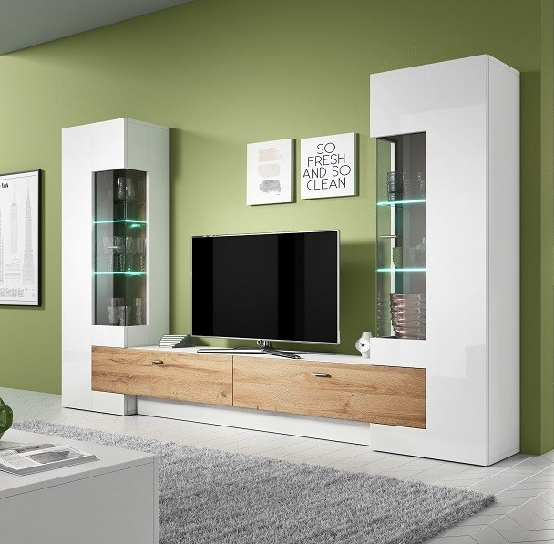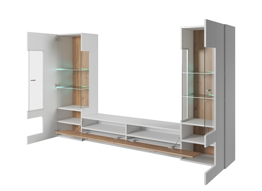 Dnevna soba BEAUTY vam bo nudila več kot dovolj prostora za vse vaše stvari in poskrbela, da bodo urejeno pospravljene. V stenskih omaricah pa boste lahko imeli vaze in druge dodatke. Dodatno lahko naročite tudi RGB LED osvetlitev, ki bo zagotovo popestrila vzdušje v prostoru.