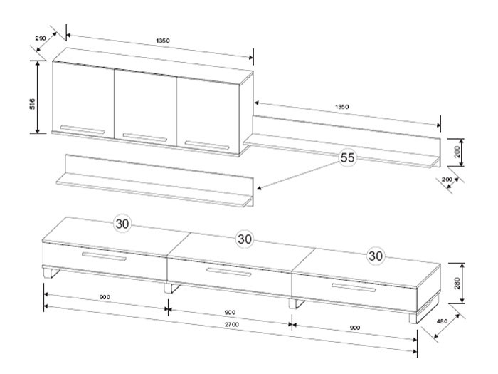Dnevna soba CLOU (visoki sijaj) je na voljo v črno-beli barvni kombinaciji, ki bo skupaj z dizajnom zagotovo popestril vaš dnevni prostor. Hkrati pa vam bo nudila več kot dovolj prostora za shranjevanje vaših stvari.