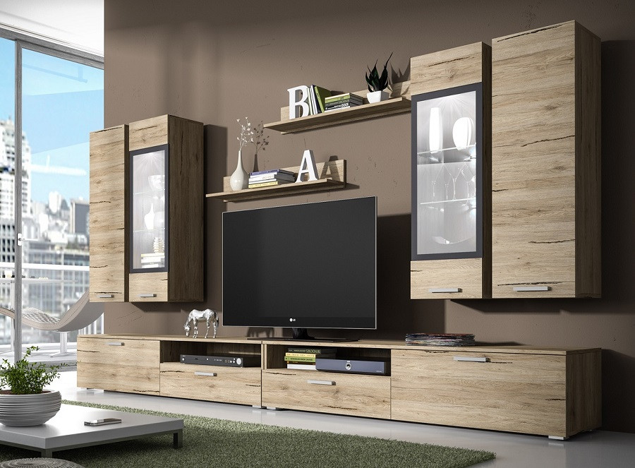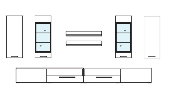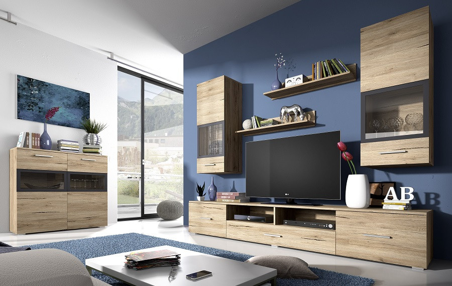 Dnevna soba Sarah vam bo nudila več kot dovolj prostora za vse vaše stvari in poskrbela, da bodo urejeno pospravljene. Pri stenskih omaricah s steklom pa boste lahko imeli vaze in druge dodatke stilsko razstavljene na ogled.Dodatno lahko naročite tudi RGB LED osvetlitev z možnostjo nastavitve barve svetlobe, ki bo zagotovo popestrila vzdušje v prostoru. Dnevna soba je na voljo v malem (210 cm) in velikem setu (280 cm).