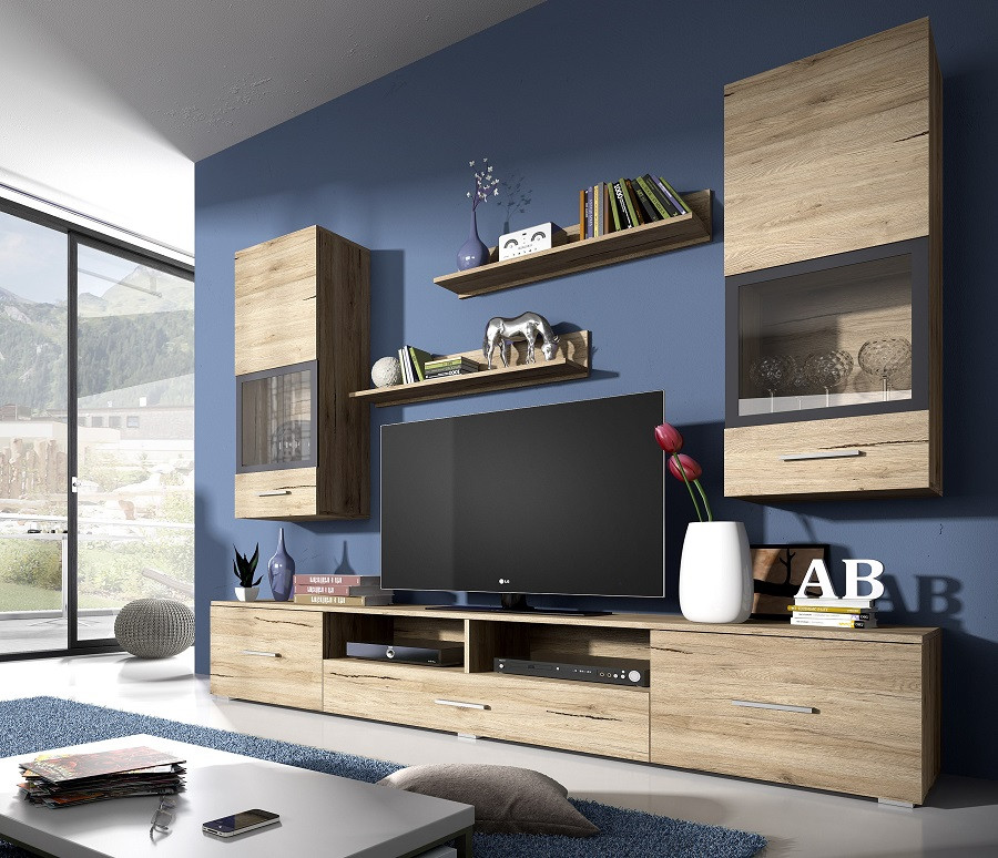 Dnevna soba Sarah vam bo nudila več kot dovolj prostora za vse vaše stvari in poskrbela, da bodo urejeno pospravljene. Pri stenskih omaricah s steklom pa boste lahko imeli vaze in druge dodatke stilsko razstavljene na ogled.Dodatno lahko naročite tudi RGB LED osvetlitev z možnostjo nastavitve barve svetlobe, ki bo zagotovo popestrila vzdušje v prostoru. Dnevna soba je na voljo v malem (210 cm) in velikem setu (280 cm).