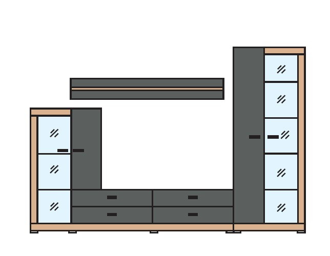 Dnevna soba Tessa J10 je izdelana iz visoko kvalitetnega in trpežnega materiala. Z melaminsko folijo oplemenitena iverna plošča je na voljo v antracit barvi visokega sijaja z detajli v san remo barvi, ki se bo odlično podal v vsak prostor. Dobra in kakovostna izdelava zagotavlja dolgo življenjsko dobo pohištva.