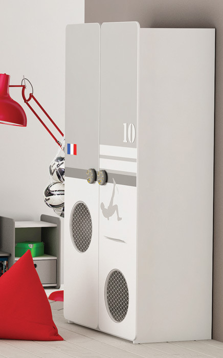 Dvodelna omara Foot je na voljo v kombinaciji bele in sive barve z nogometnimi motivi. Omara je izdelana iz kvalitetnega MDF materiala bo navdušila vašega malega nogometnega navdušenca.