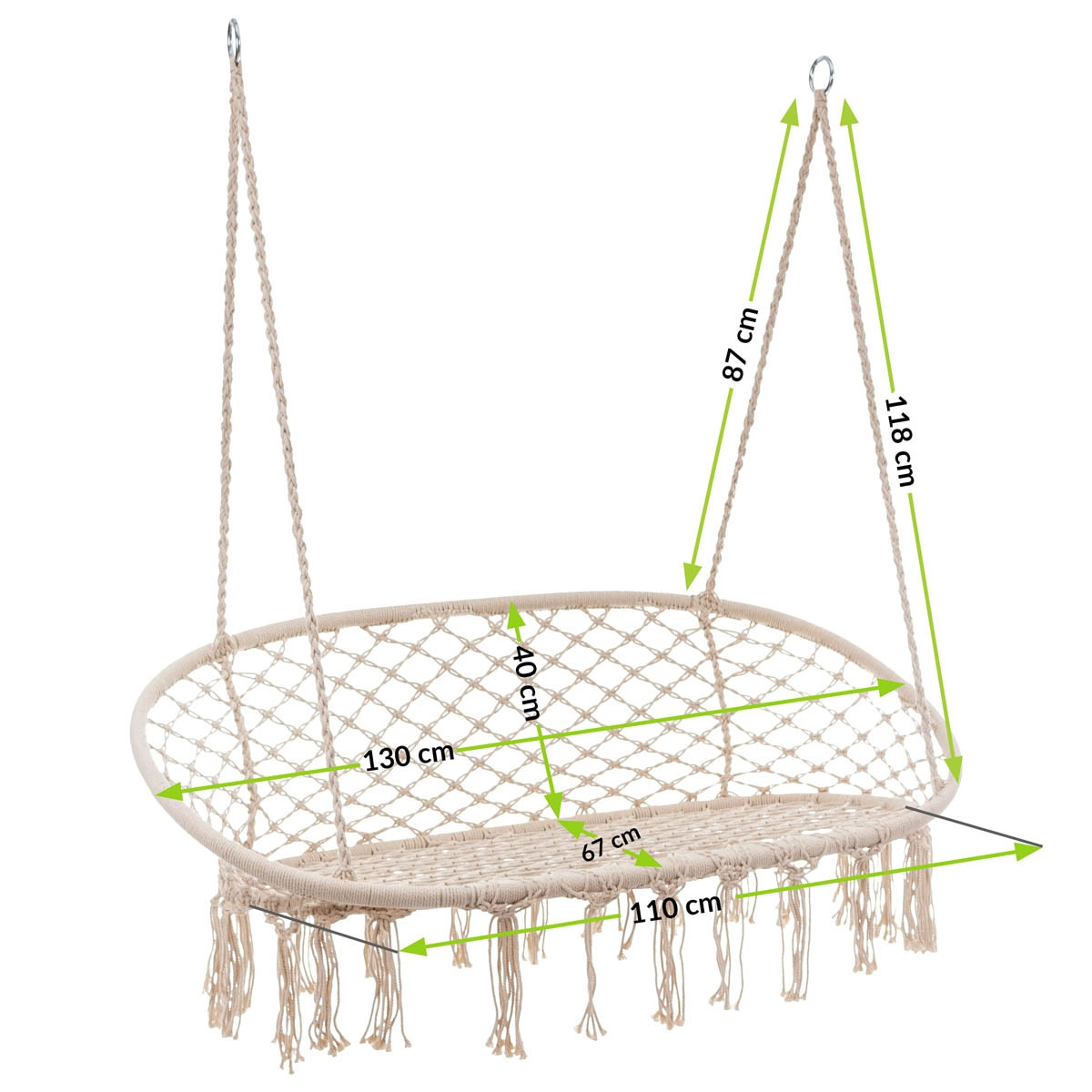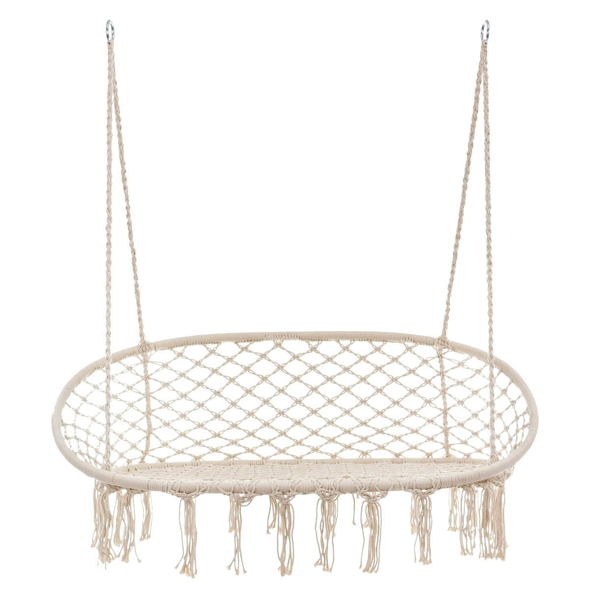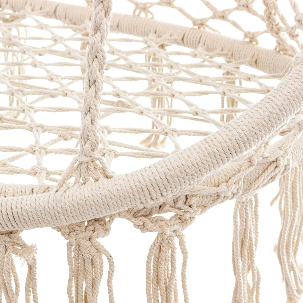 Privoščite sebi in svojim bližnjim vrtni gugalni stol BRASIL HOOP, ki bo v vaš vrt vnesel atraktivnost in možnost sprostitve ob nežnem zibanju v naravi. Narejen je iz bombaža, ki je prijeten za sedenje. Držijo ga štiri močne vrvi, ki hrkati dajejo stabilnost. Maksimalna obremenitev znaša 120 kg.