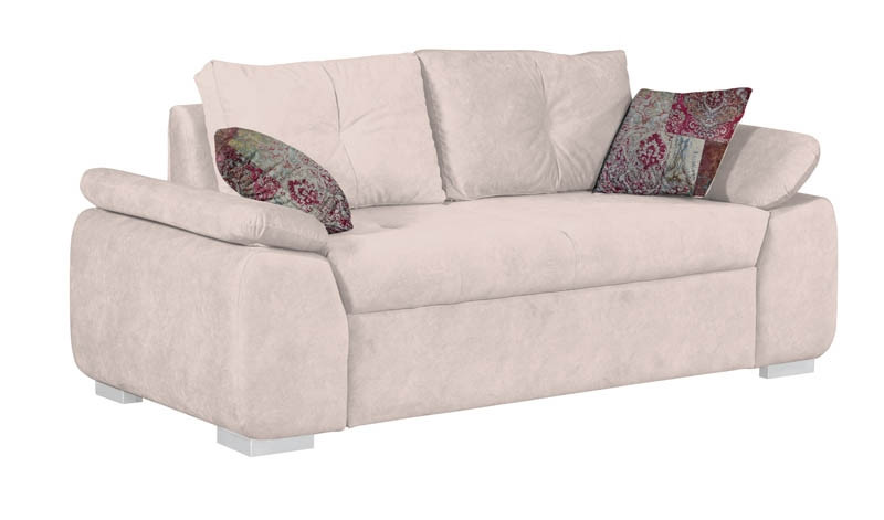 Moderna sedežna garnitura z dodatnim predalom za shranjevanje POLIS je odlična izbira za vaš dom, saj lahko prilagodite njeno barvo in širino glede na lastne želje in potrebe! Izbirate lahko med kar 80-imi različnimi barvami visoko-kakovostne tkanine za barvo sedežne in vključenih vzglavnikov. Vključena sta dva velika vzglavnika in dva majhna dekorativna vzglavnika. Barve dekorativnih vzglavnikov izberete tako, da jih vpišete v okenček 'opomba pri naročilu'. Izdelana je iz visoko kakovostne pene in pravega lesa, zato je izjemno udobna in trpežna. Vključuje priročni predal za shranjevanje, kamor lahko pospravite posteljnino, dodatne vzglavnike in podobne izdelke.