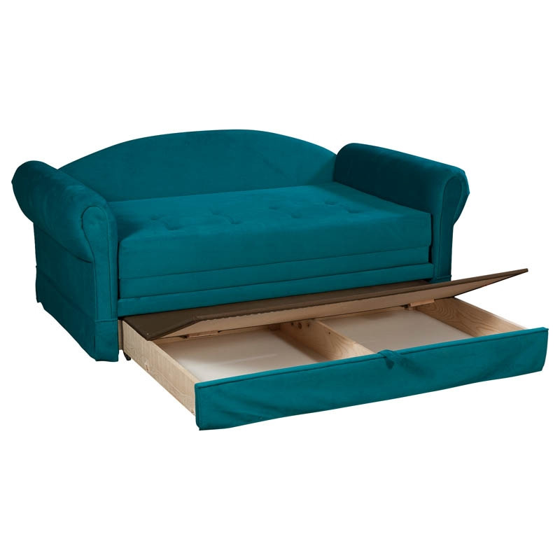 Sedežna garnitura ima funkcijo dodatnega ležišča, ki je iste kvalitete kot sedežni del. Zaradi dodatnega ležišča ne boste nikoli več v dilemi, kje bodo prespali gostje, saj predstavlja udobno in kvalitetno ležišče, zaradi katerega bodo gostje odšli spočiti in naspani. Trosed vsebuje tudi prostorni predal za shranjevanje, kamor lahko pospravite posteljnino, igrače, dodatne vzglavnike in podobne željene predmete.