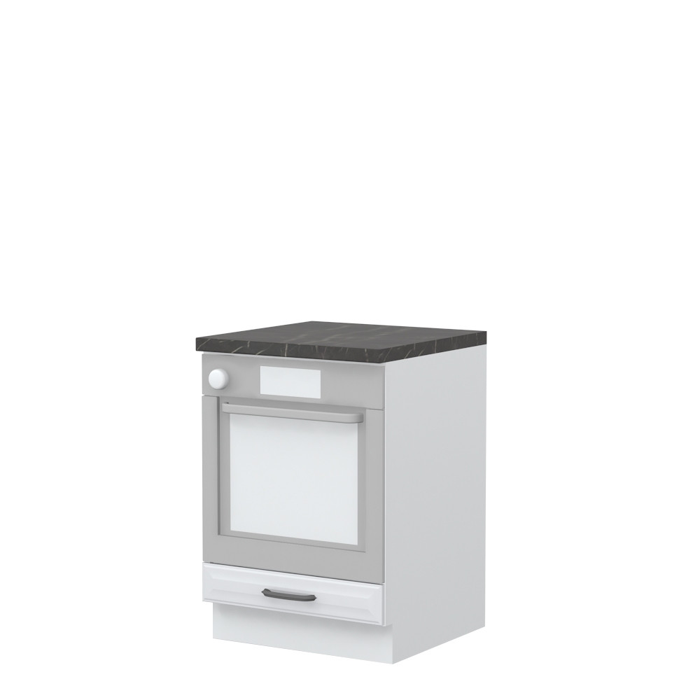 Element za kuhinjo EVIA je primeren za vse standardne vgradne pečice. Spodaj ima predal v katerega lahko pospravite razne pekače in podobne kuhinjske pripomočke. Predal ima funkcijo tihega zapiranja, ki omogoča lažjo vsakodnevno uporabo. Na voljo je v svetli barvi, ki se lepo poda v vsak dom in se enostavno kombinira z drugimi barvami.