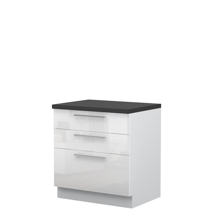 Element za kuhinjo RIVA je dobavljiv v beli barvi visokega sijaja. Element vključuje pult. Ročke je potrebno dodatno naročiti.