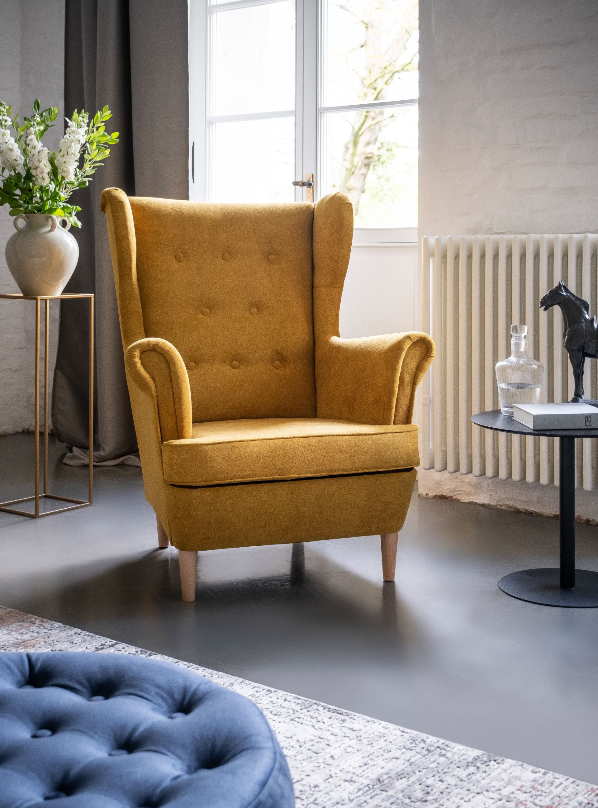 Fotelj Aros ima lesene nogice, skrbno oblikovano sedišče in rokonaslone, ter hrbtišče z elegantnimi všitki, ki pripomorejo k klasičnemu dizajnu fotelja. Klasičen dizajn je brezčasen in lepo sovpada tako z modernim kot z bolj klasičnim ali retro stilom, zato izgleda odlično v vsakem domu!