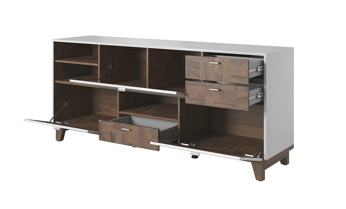 Kolekcija OSLO se odlikuje po velikem številu manjših omaric, predalov in polic, ki vam olajšajo ohranjanje reda in čistoče v dnevni sobi. Omogoča izjemno dobro organizacijo najrazličnejših predmetov, zato boste vedno vedeli, kje je kakšna stvar pospravljena.