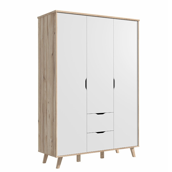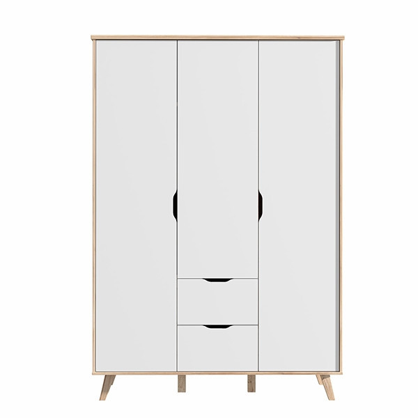 Garderobna omara LALITA je sodobna minimalistična omara, ki se odlično poda v vsako spalnico in popestri njen videz. Omara ima šest polic in eno palico za obešanje, zato nudi obilo prostora za shranjevanje in dobro organizacijo vaših oblačil in modnih dodatkov! Čudovita kombinacija bele barve in imitacije sonoma hrasta, ter polkrožni izrezi namesto ročajov, dajejo tej omari moderen in minimalističen izgled, ki vam bo sigurno všeč!