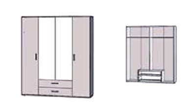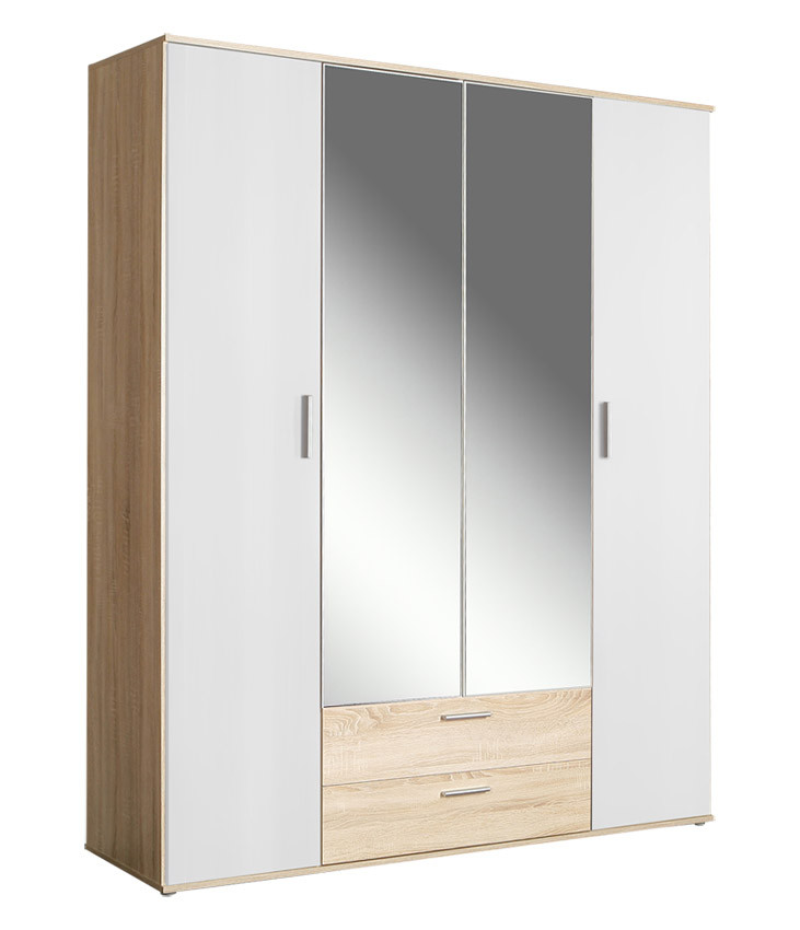 Garderobna omara Nano NNS83S širine 160,7 cm sestavljena iz štirih delov, na sredini ima dvoje ličnic z ogledalom in dva velika predala, ob straneh pa dvoje vrat, ki za seboj skrivata uporaben prostor za obleke.