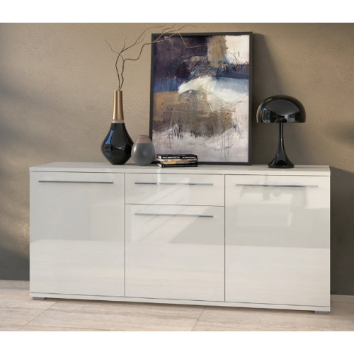 Garderobna omara je na voljo v beli ali bež barvi v visokem sijaju, ki bo v vaš dom prinesel več svetlobe in elegance. Pohištvo v visokem sijaju v vašem domu ustvari občutek čistoče in prefinjenosti. Kromirani ročaji pripomorejo k prefinjenem videzu te garderobne omare, ki bo vedno v središču pozornosti.