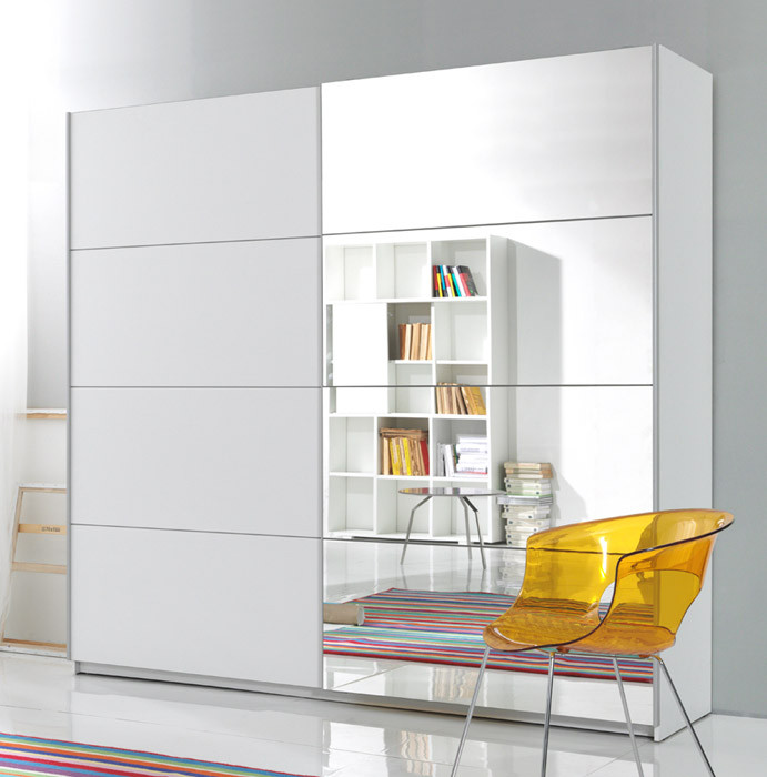 Omara z drsnimi vrati in ogledalom Beta (bela) vam bo pomagala rešiti problem pri shranjevanju , saj nudi več kot dovolj prostora za vsa vaša oblačila. Notranji del omare je razdeljen na dva dela. Ena polovica vsebuje polico in drog za obešanje, druga polovica pa 4 praktične police.