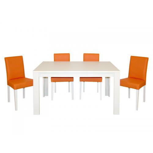 Jedilna garnitura HAPPY je zelo elegantna in bo zagotovo tudi popestrila vašo jedilnico. Miza je iz črnega stekla, stoli pa so oblazinjeni v EKO usnje. Garnitura vsebuje mizo in štiri stole.