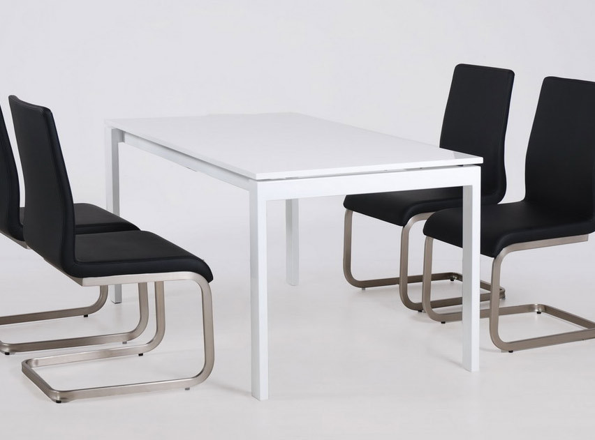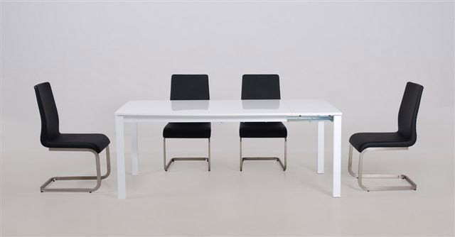 Preprosto raztegljiva jedilna miza Eliza je na voljo v kar 5 različnih kombinacijah barve visokega sijaja (bela ali siva) in dimenzije, med njimi boste zagotovo našli primerno za vašo jedilnico.