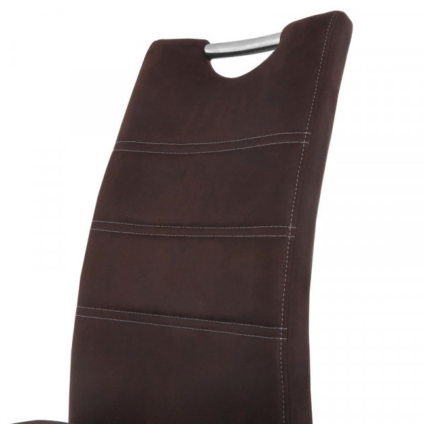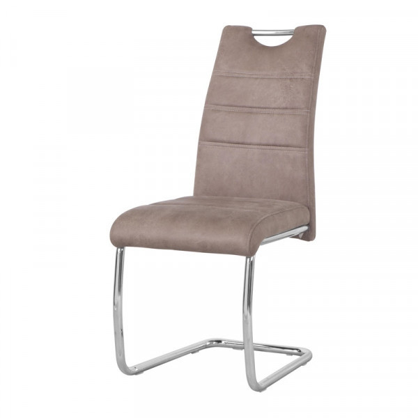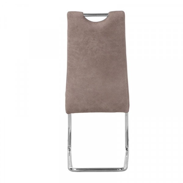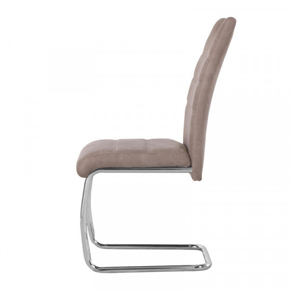 Jedilni stol AMOR oblazinjen s tkanino iz mikrofibre, ki je enostavna za vzdrževanje. Stol ima kromirano podnožje. Na voljo je v več različnih barvah - rjava in taupe. Na voljo je tudi enak stol RIM, ki je oblazinjen z umetnim PU usnjem in si ga lahko ogledate na naši spletni strani.