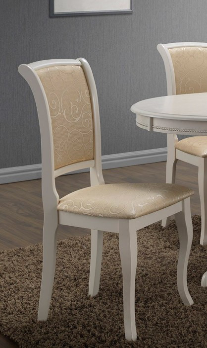 Jedilni stol Anjelica je lesen oblazinjen stol, ki vam bo nudil izjemno udobje. Stol je oblazinjen v bež tkanino na sedišču in naslonu. Stol Anjelica - EKSPONAT je dostopen v beli barvi.