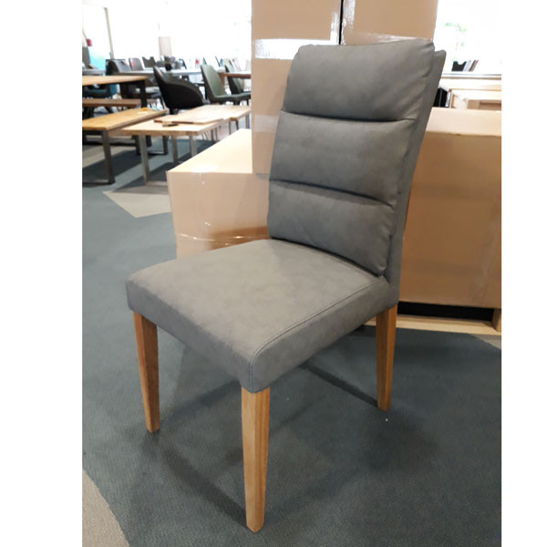 Jedilni stol GABI je stol z nogami iz masivnega hrastovega lesa. Stol je po hrbtišču in sedišču oblazinjen s kvalitetno tkanino. Na hrbtnem delu ima dekorativno prešitje. Višina sedišča je 48cm. Na voljo je v treh različnih barvah.