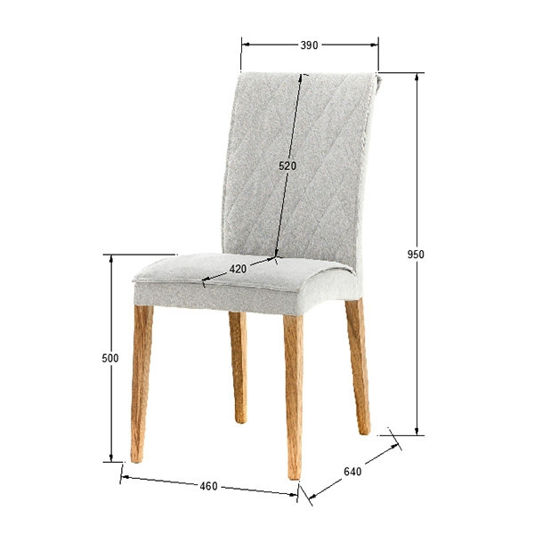 Eleganten jedilniški stol MAGNA je oblazinjen s kvalitetno tkanino v temno ali svetlo sivi barvi, ki nudi udobje med sedenjem v vseh letnih časih. Po naslonu ima čudovito prešitje v obliki romba, ki stolu nudi bolj eleganten videz. Poleg dobrega videza se stol ponaša tudi s kvaliteto, saj ima masivne nogice iz hrasta in maksimalno nosilnost 120 kg.