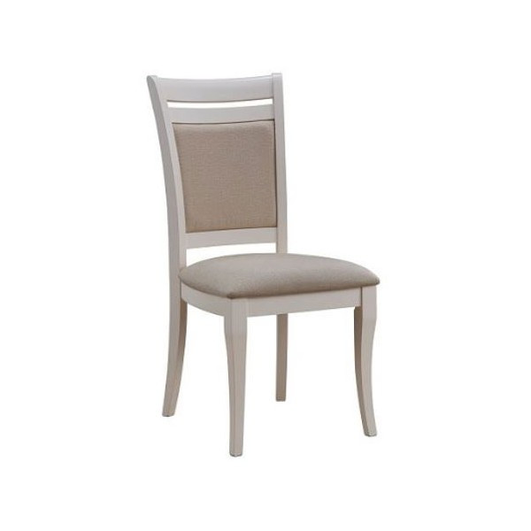 Jedilni stol SIENA je oblazinjen jedilni stol, rustikalnega videza v kremno beli barvi. Narejen je iz masivnega lesa. Preverite še mizo iz tega programa.