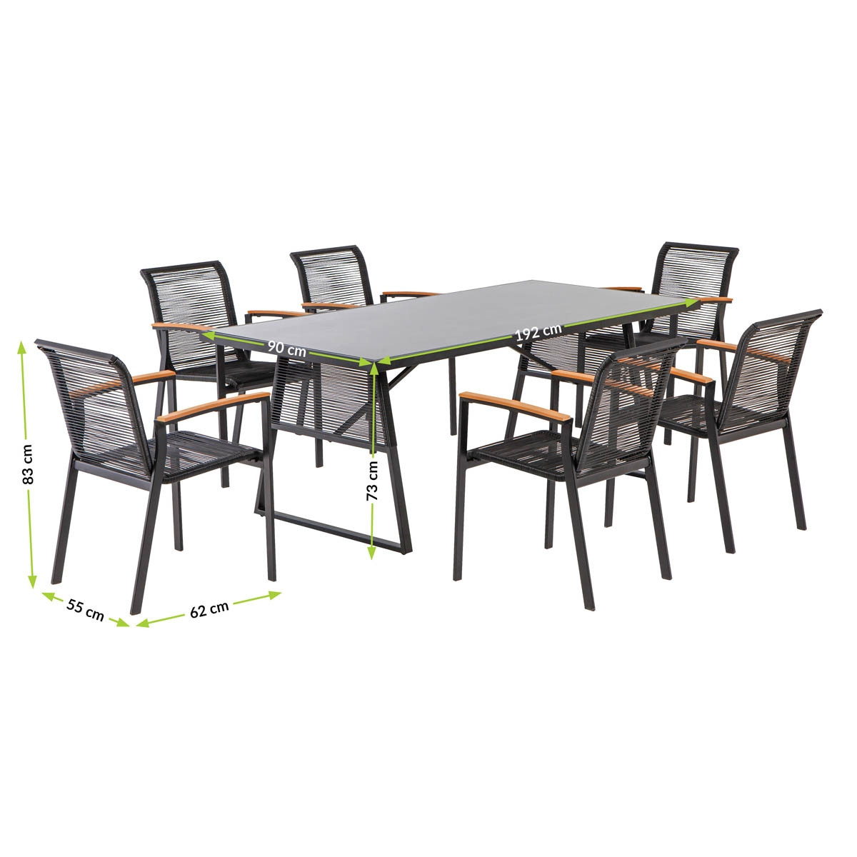 Moderen in estetsko dovršen jedilni vrti set COLON je namenjen druženju in obrokom v prijetnih poletnih dneh, kjer boste obdani z dobro družbo in dobro hrano. Miza je iz jeklenega ogrodja, kar ji daje stabilnost, stoli so izdelani iz poliestra, rokonasloni pa iz dekorativnega lesa, ki dajejo naraven občutek. Plošča mize je steklena.