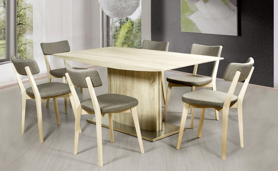 Jedilniški set je sestavljen iz jedilne mize Sister (180 cm) v sonoma hrast barvi in 4 stolov Lilly. Tako miza, kot stoli so minimalističnega dizajna, ki se lepo poda v vsako jedilnico.
