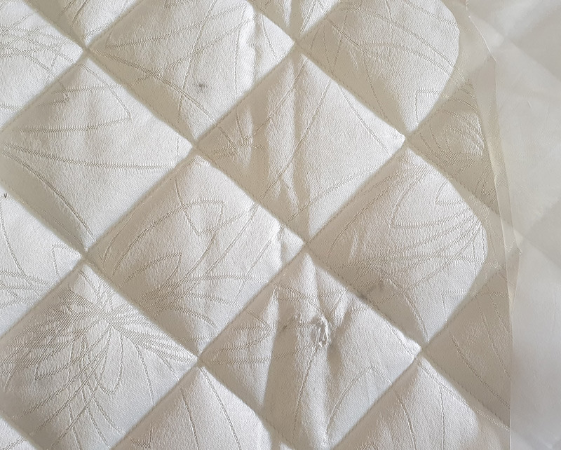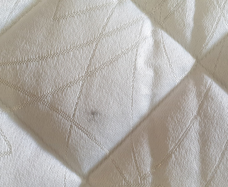 Ležišče je popolnoma novo, neuporabljeno. Zaradi transporta pa ima poškodbo in umazanijo na prevleki. Sliki v galeriji.
