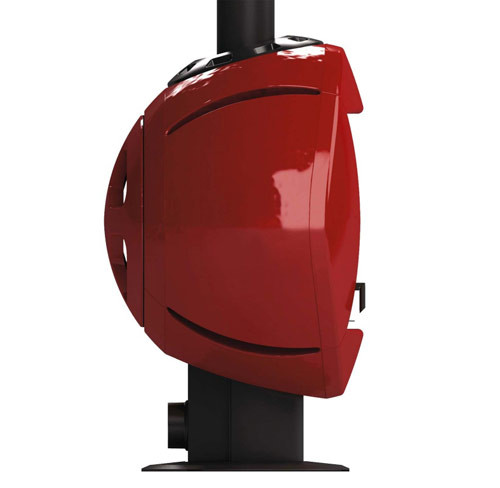 Kamin La Nordica ELLIPSE - rdeč bo dodobra ogrel tudi do 229 m3 velika stanovanja. Notranjost kamina je iz litega železa, zunanja stran pa je odeta v keramiko. Kurjenje je na drva.
