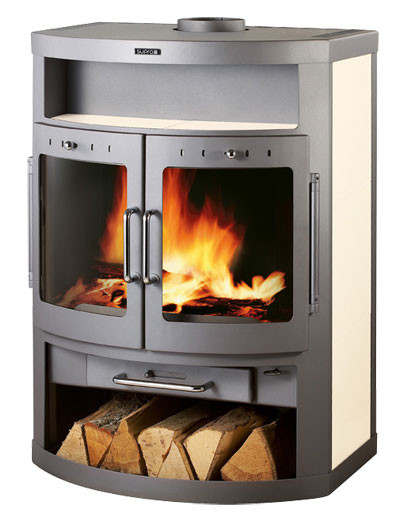 Kamin Supra VICTORIA - slonokoščena obdan s keramiko, vam bo nudil toploto in ustvaril intimno vzdušje v mrzlih zimskih dneh. Kurjava je na drva, izkoristek kurjave pa je kar 77,4%.
