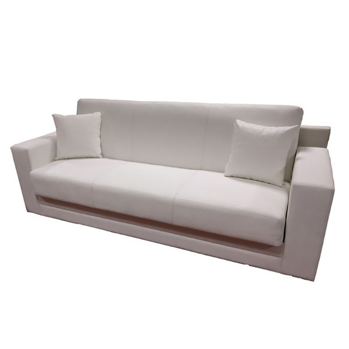 Kavč FUTURA je praktičen trosed iz umetnega usnja, ki je dobavljiv v dveh različnih barvah. Praktično se razvleče v večje ležišče. Ima zaboj, žičnato vzmetje in elastične trakove.