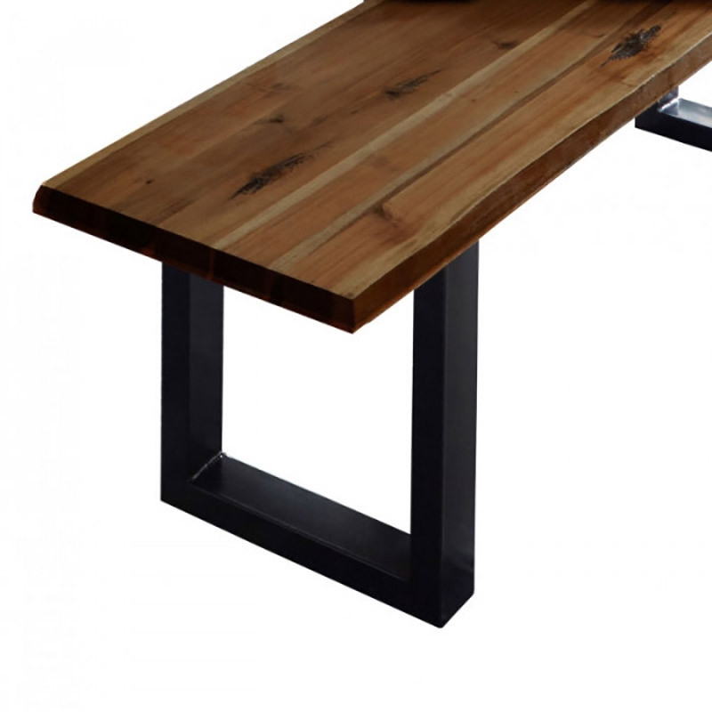 KLOP IZ MASIVNEGA LESA CARTER je izdelana iz trpežnega in vzdržljivega materiala, ki vam bo omogočil dolgoletno uporabo klopi. Klop je najprej lakirana, ko je dovolj suha pa je obdelana še z voskom. Ima poseben in zanimiv izgled zaradi naravnega roba na plošči, katere debelina je 26mm. Črno podnožje je izdelano iz kovine. Izbirate lahko med različnimi dimenzijami klopi. Klop predstavlja naravno lepoto akacijevega lesa, ki bo vaš dom modernizirala.