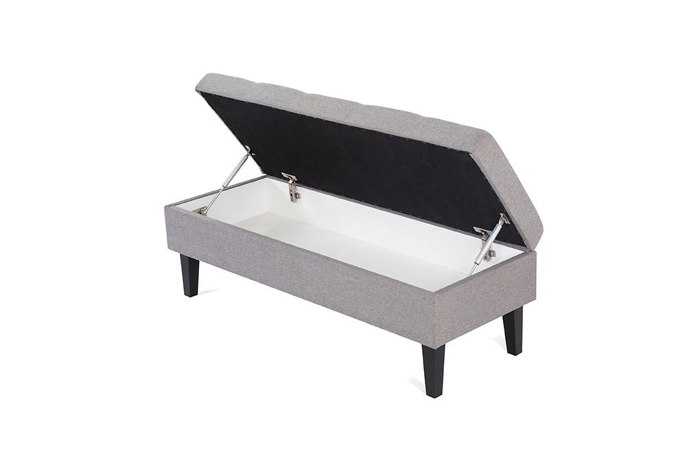 Oblazinjena je v tkanino v sivi barvi, ki vam nudi obilo udobja med sedenjem in katera je prešita z gumbi, kar ji nudi bolj eleganten in izpopolnjen videz. Predal se odpre s pomočjo plinskega mehanizma.