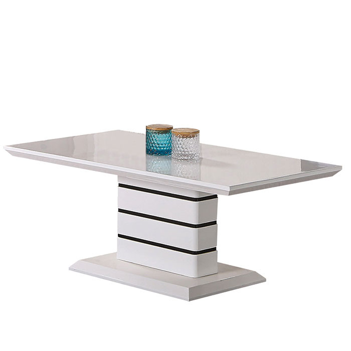 Klubska miza AVELIN je klubska miza v beli barvi visokega sijaja. Narejena iz MDF materiala, z zanimivim podnožjem.