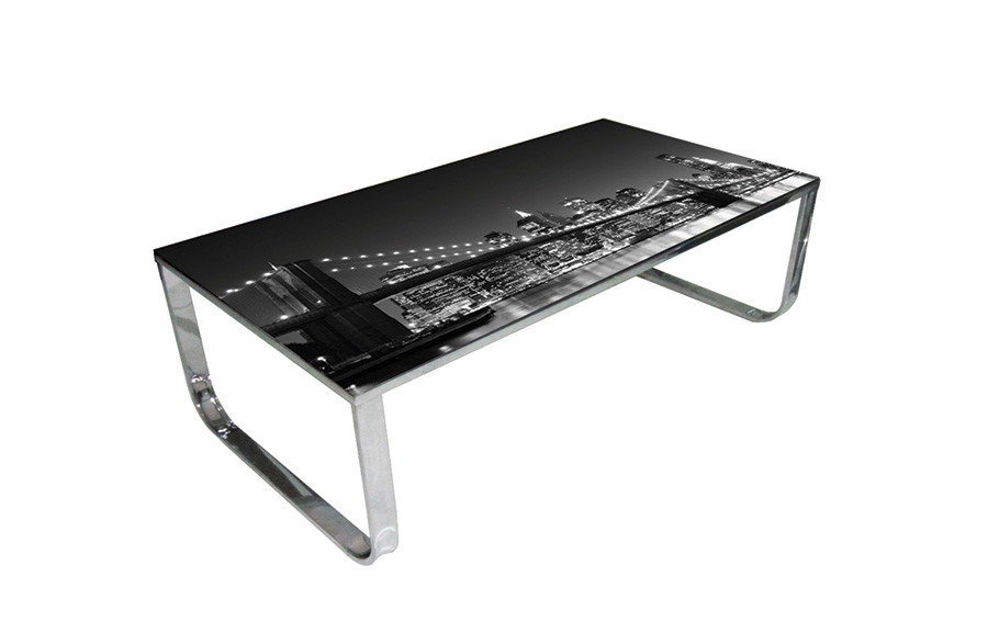 Klubska miza BRIDGE je trendovska klubska miza. Plošča je steklena in s potiskom z atraktivnim motivom. Noge so črne. Oglejte si še ostale motive tega modela in si izberite najljubšo.