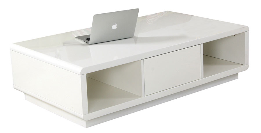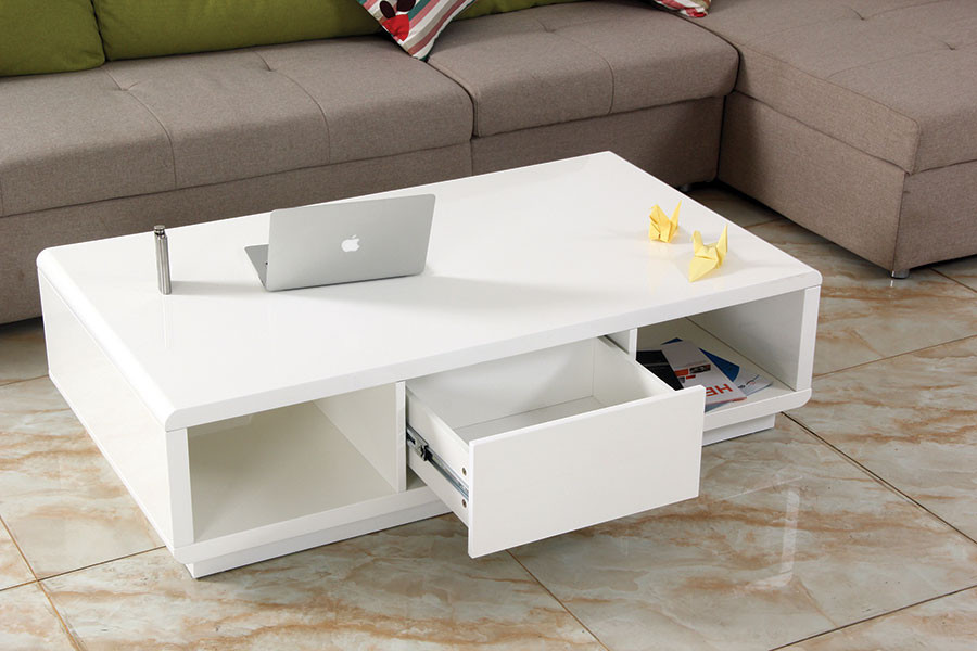 Klubska miza KAROLINA je klubska mizica iz MDF materiala v beli barvi visokega sijaja. Na sredini ima predal.