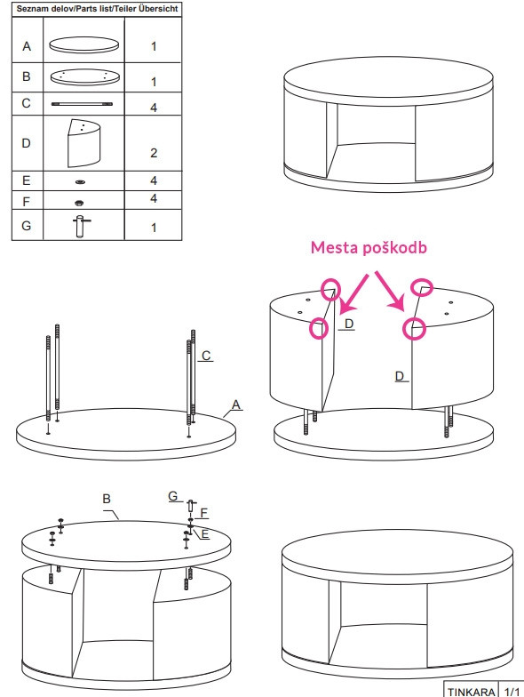 Klubska miza TINKARA - POŠKODOVANO II