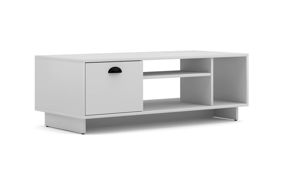 Čudovita bela klubska mizica CUPARINO je popolna kombinacija elegance in funkcionalnosti. Njen predal ponuja praktično shranjevanje za vaše medijske pripomočke, medtem ko odprta polica omogoča dostop do pogosto uporabljenih naprav.